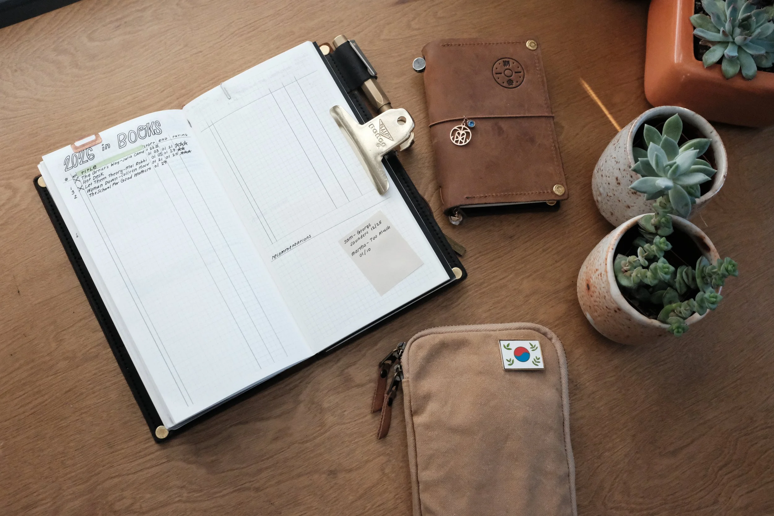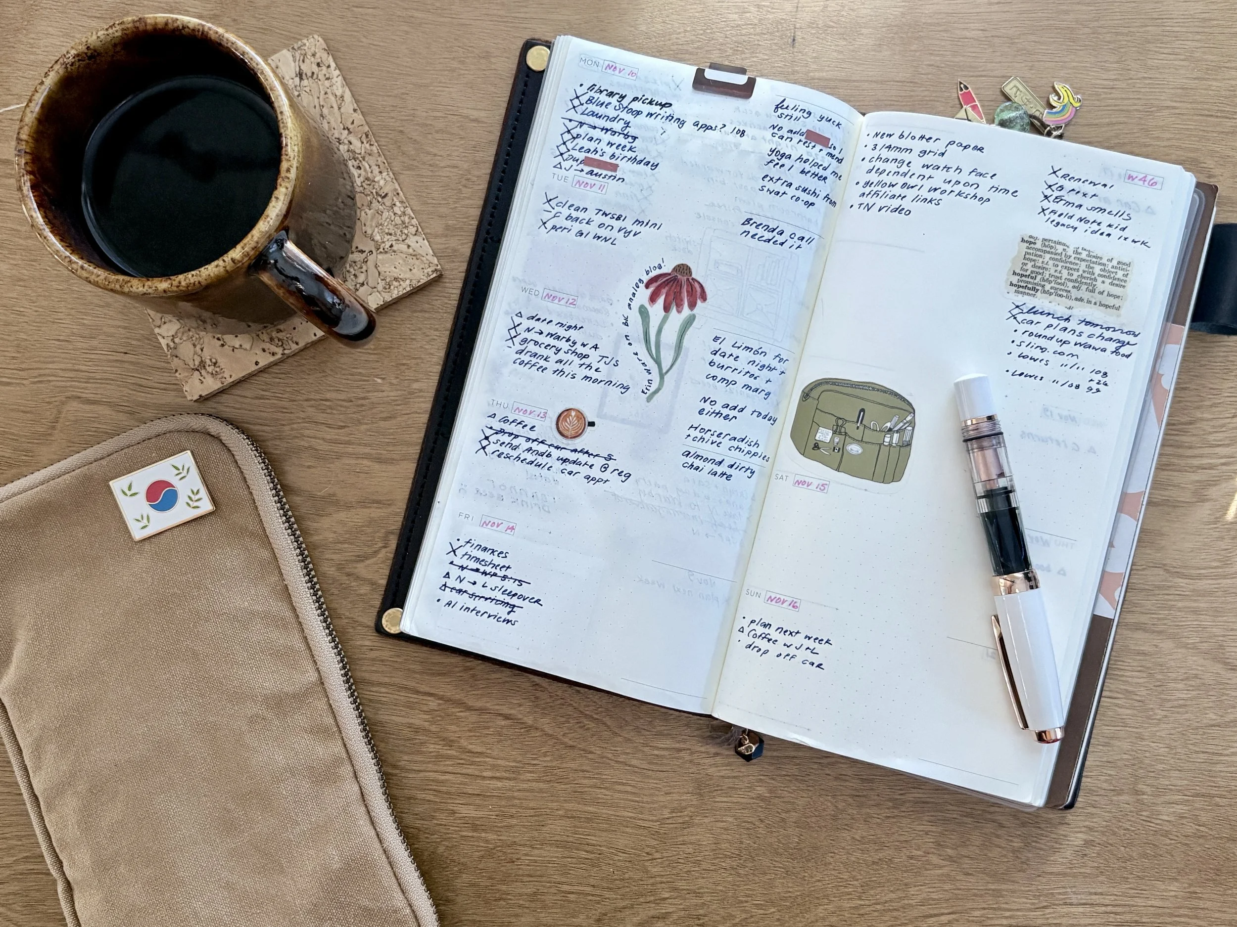 I spent my whole first year+ in the proprietary TN weekly undated, with the days on the left and notes on the right, and then moved into the Baum-Kuchen weekly undated one because it's cream-colored Tomoe River Paper (yum) and because TRP is thinner, there are also more pages in the book. Bonus.